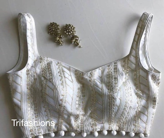 White Deep V Cut Sequins Blouse Designer Pattern Beautiful Etsy